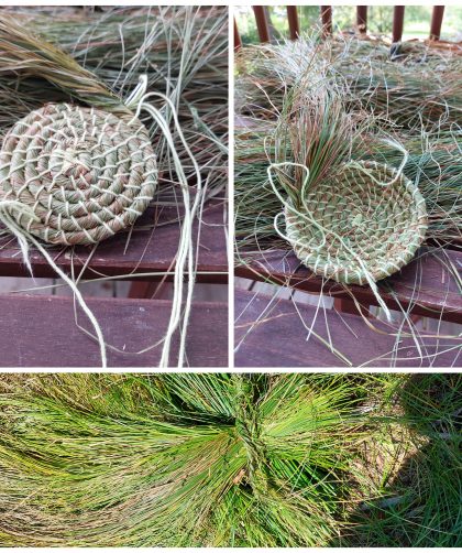 Das tolle ist man braucht für diese wunderschönen und haltbaren Körbchen nur trockenes Gras, eine Nadel und einen Baumwollfaden.